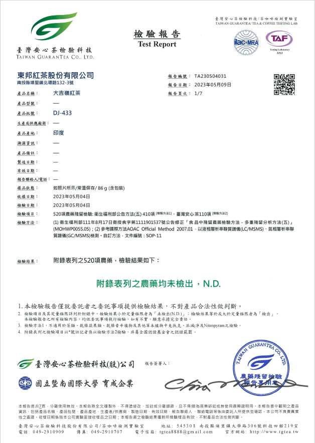 🍂大吉嶺紅茶通過112年SGS農藥殘留檢驗報告